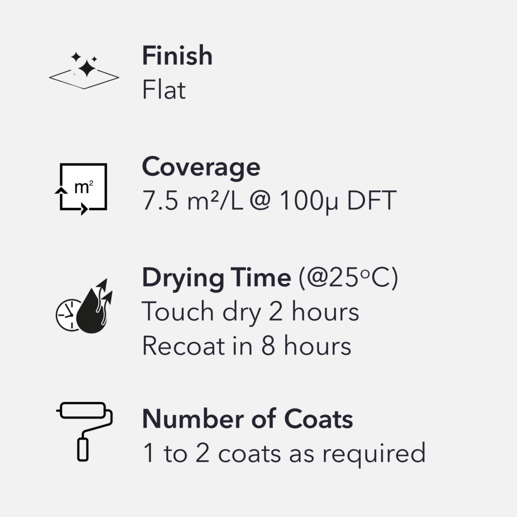 A fast drying, high build two-pack amine cured epoxy anticorrosive coating. Specially designed to be used where fast drying application is required. Can be used as a primer, mid coat, finish coat or as a single coat system in atmospheric environments.